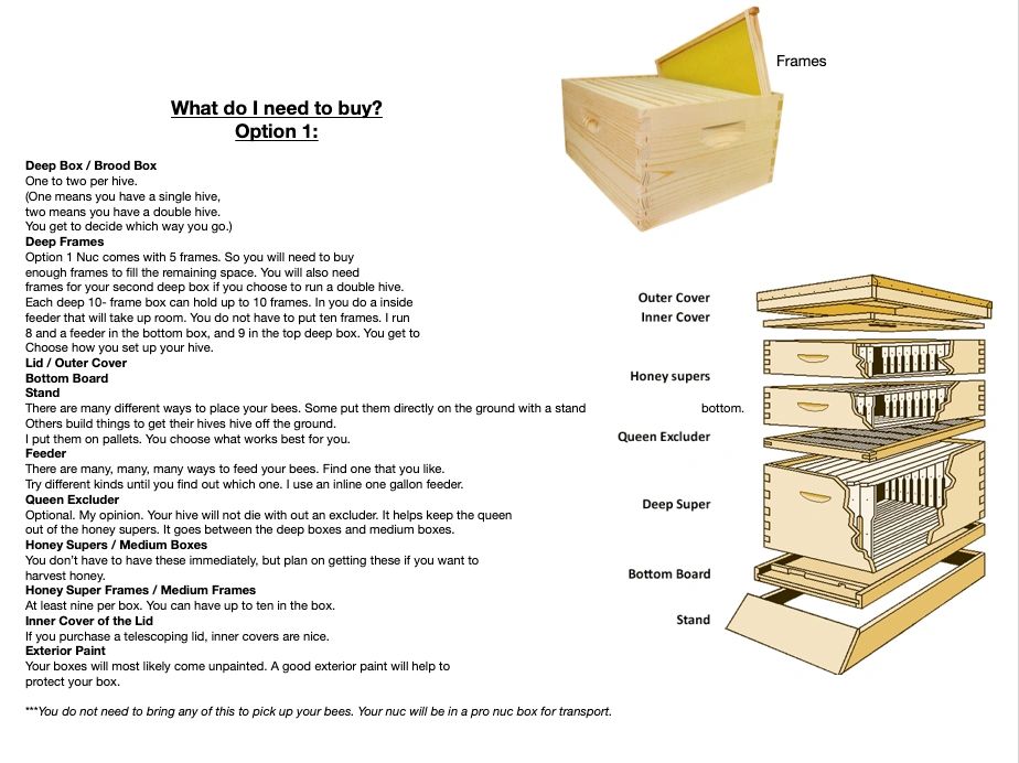 We will start scheduling for you to pick up your bees after we have checked the splits. We split around mid March, and then wait around 21 days for the queen to hatch and go on her mating flight. We then check them to ensure that we have good hives for you. We will then contact you to begin scheduling pick up dates. We will contact you through email to schedule the pick up.
